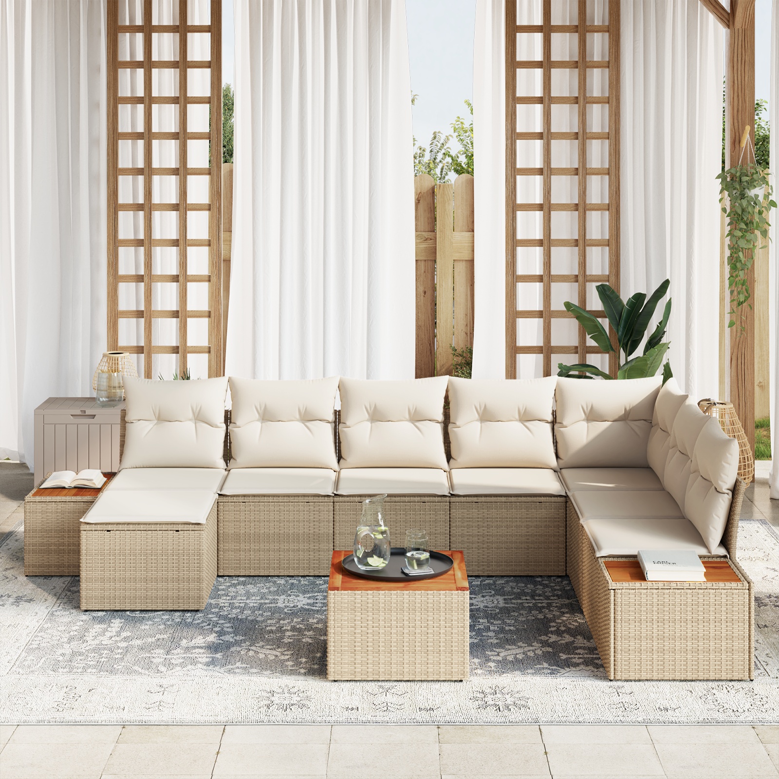 Set de canapele pentru grădină cu pernă 9 pcs bej și crem