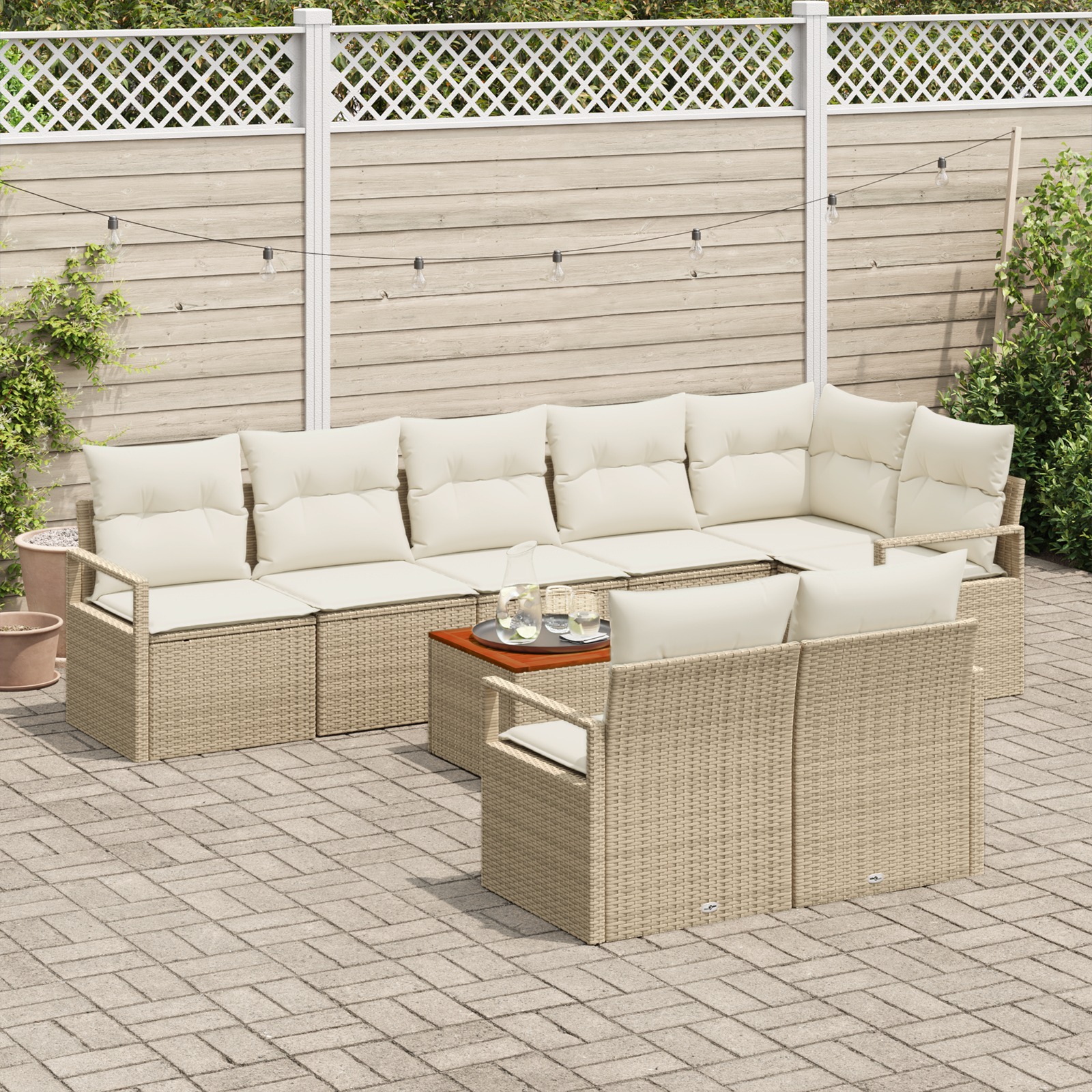 Set de canapele pentru grădină 9 pcs Bej și alb