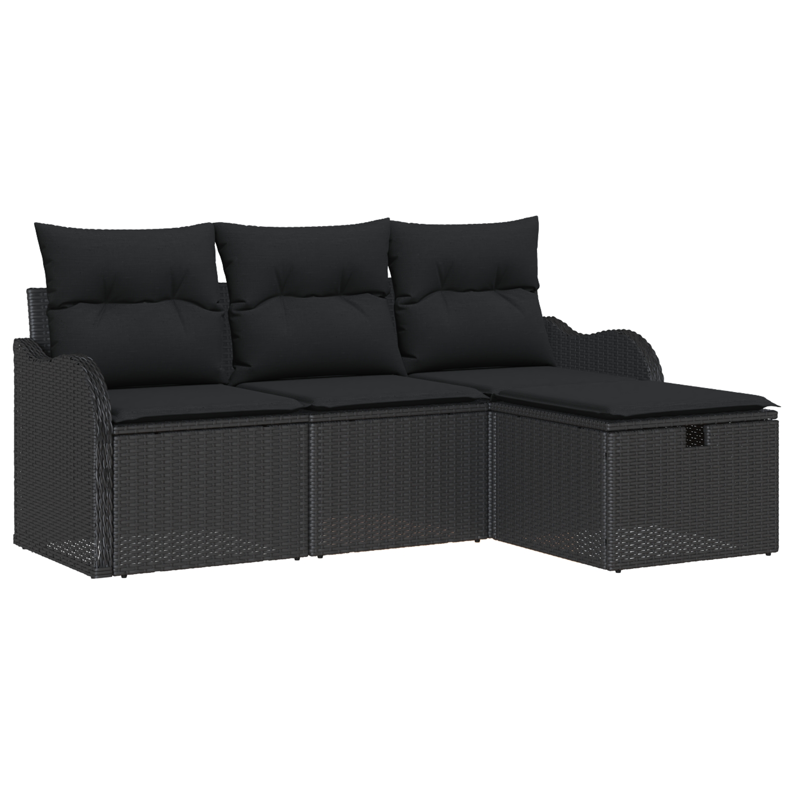Set de canapele pentru grădină cu pernă 4 pcs Negru Rattan poli