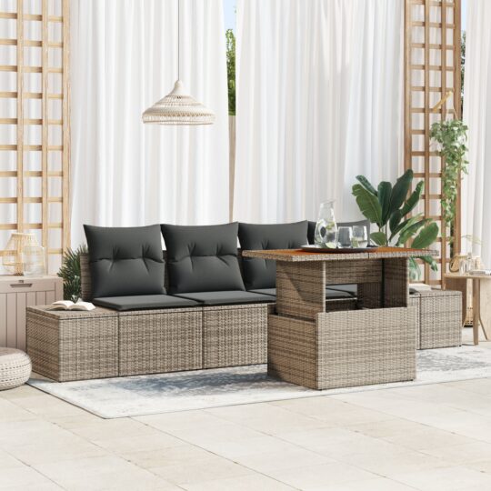 Set de canapele pentru grădină 5 pcs Gri Rattan poli