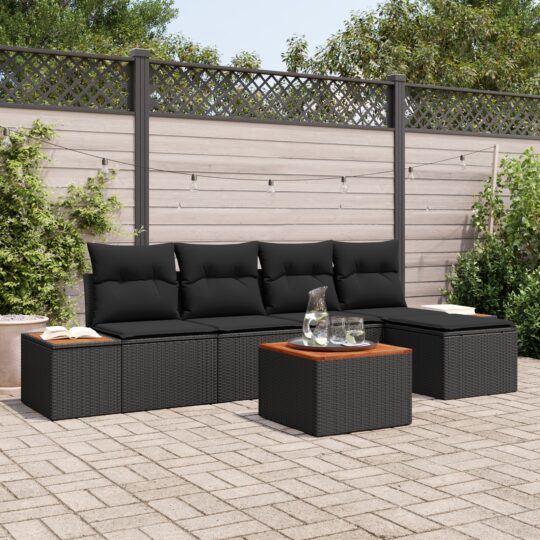 Set de canapele pentru grădină cu pernă 6 pcs Negru Rattan poli