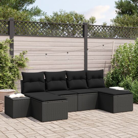 Set de canapele pentru grădină cu pernă 6 pcs Negru Rattan poli