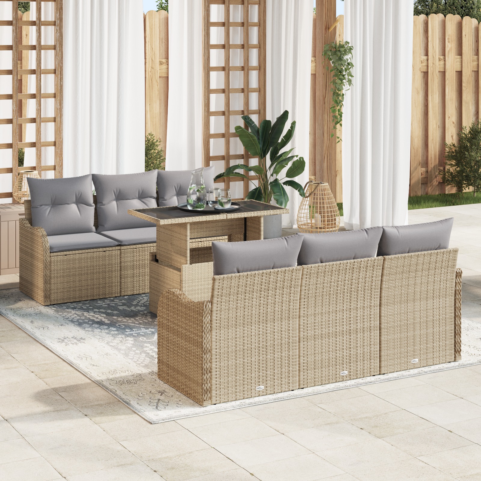 Set de canapele pentru grădină cu pernă 7 pcs Bej Rattan poli