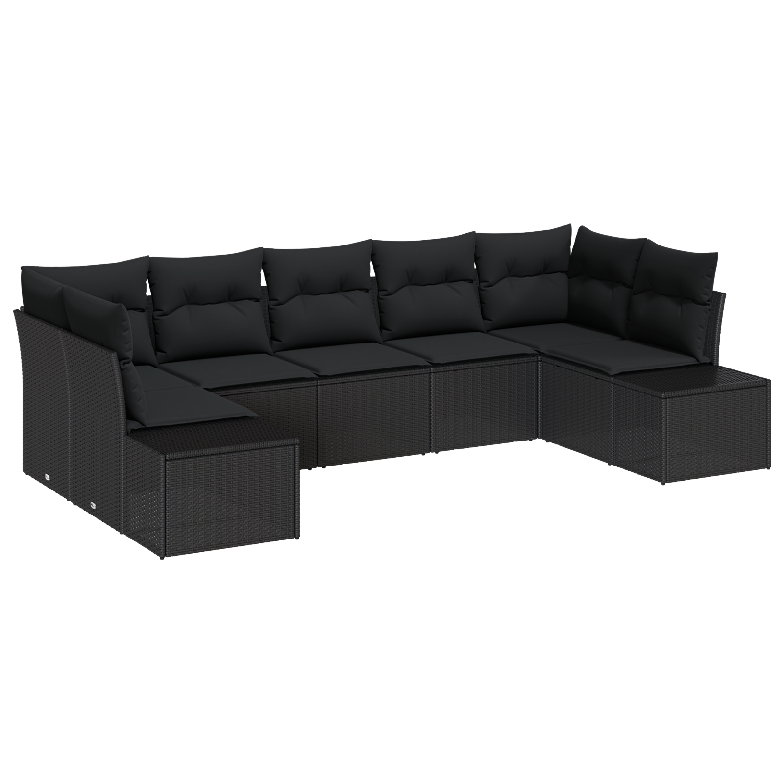 Set de canapele pentru grădină cu pernă 7 pcs Negru Rattan poli