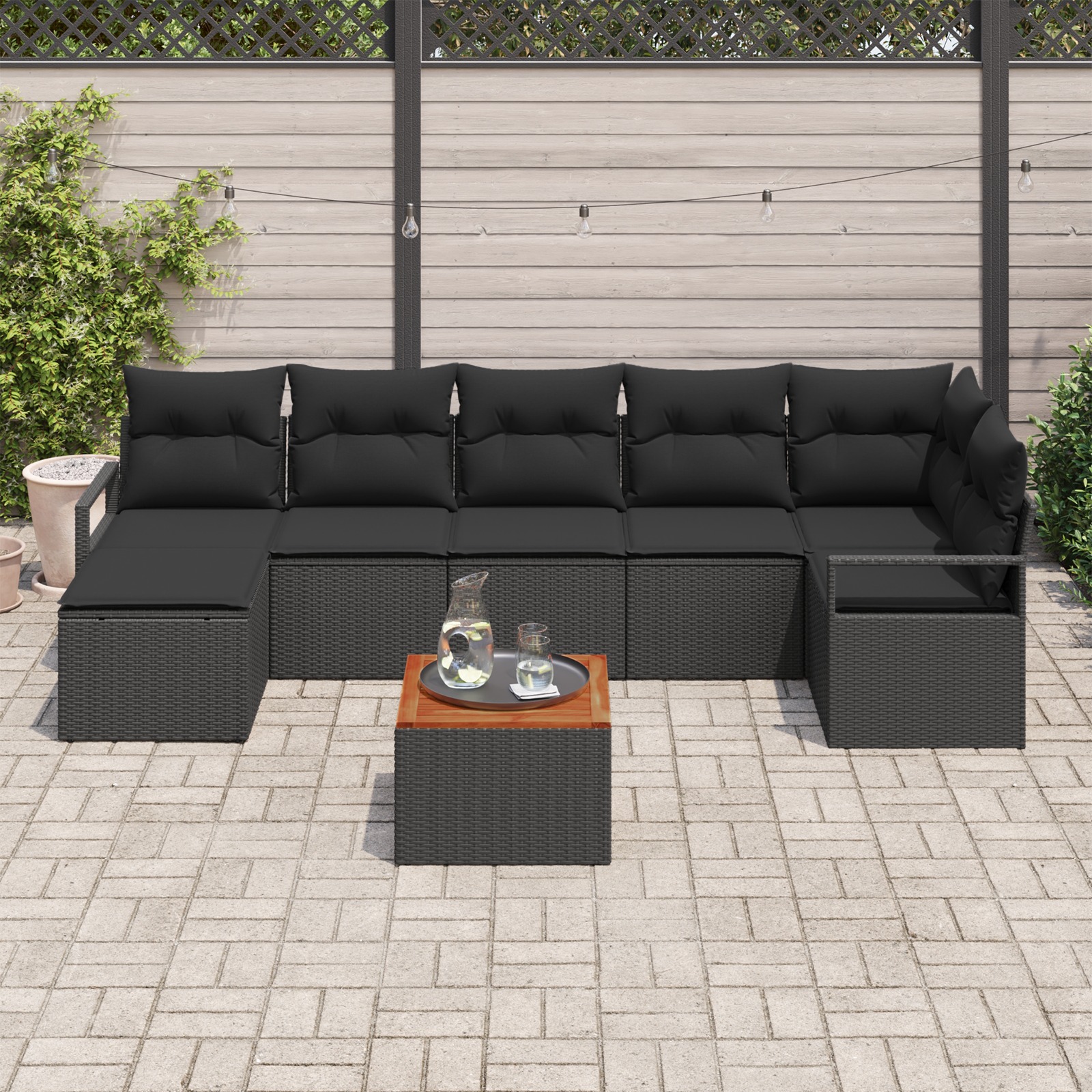 Set de canapele pentru grădină cu pernă 8 pcs Negru Rattan poli
