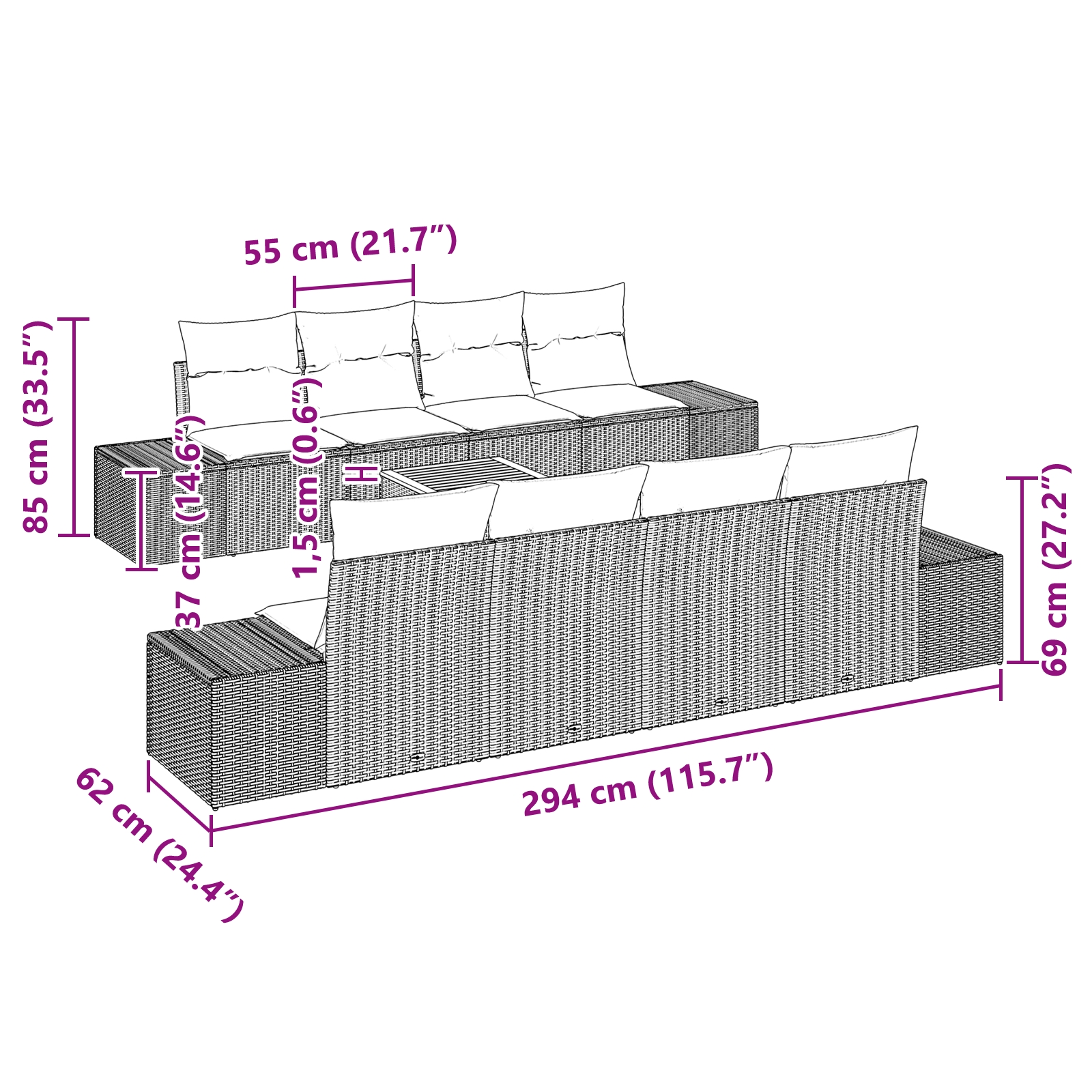 Set de canapele pentru grădină cu pernă 9 pcs Bej Rattan poli