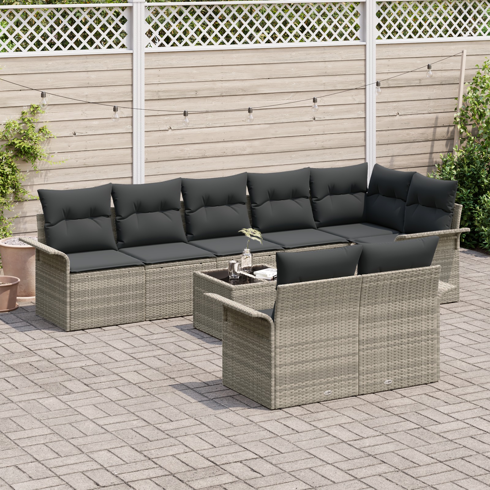 Set de canapele pentru grădină 9 pcs Gri deschis Rattan poli