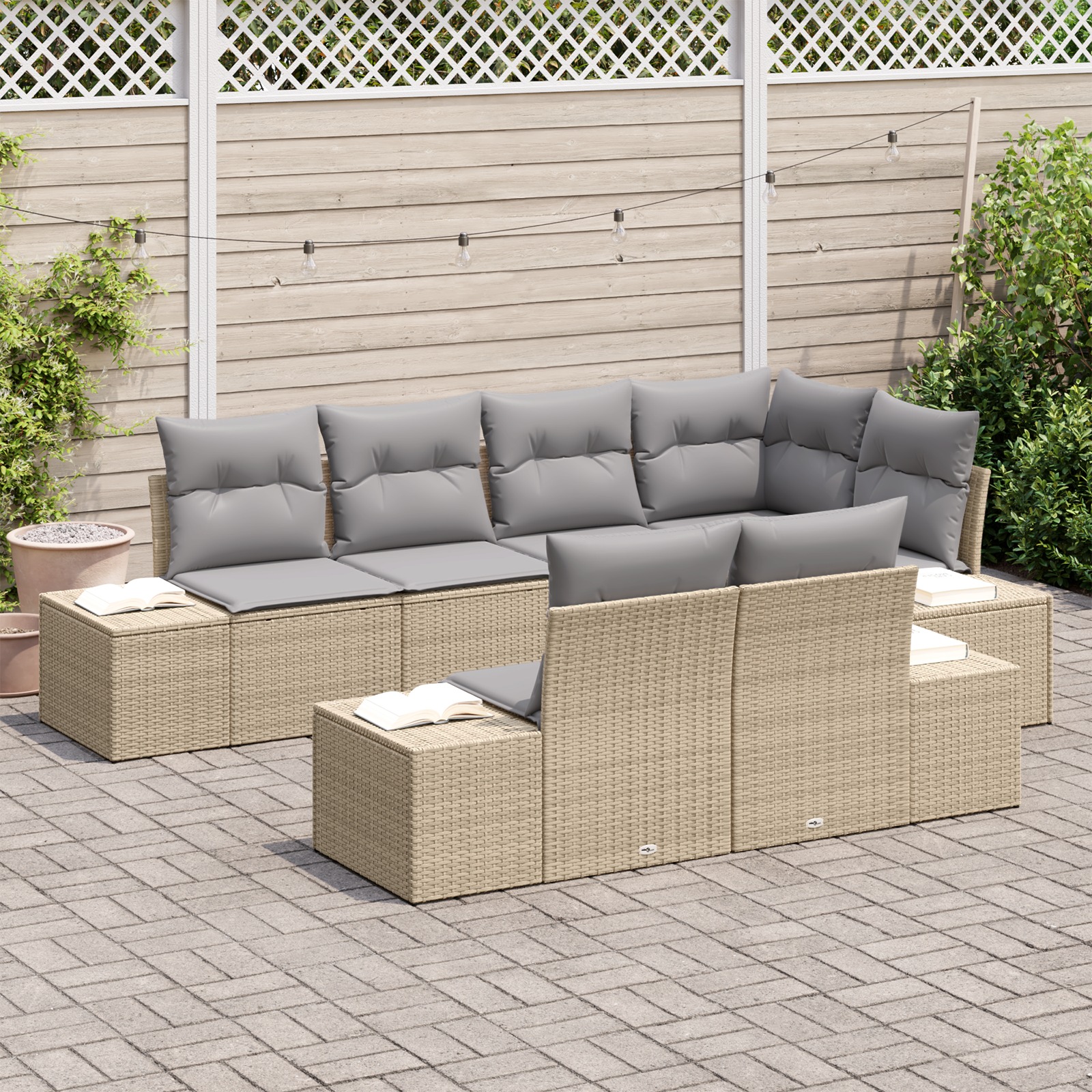 Set de canapele pentru grădină 7 pcs bej și gri Rattan poli