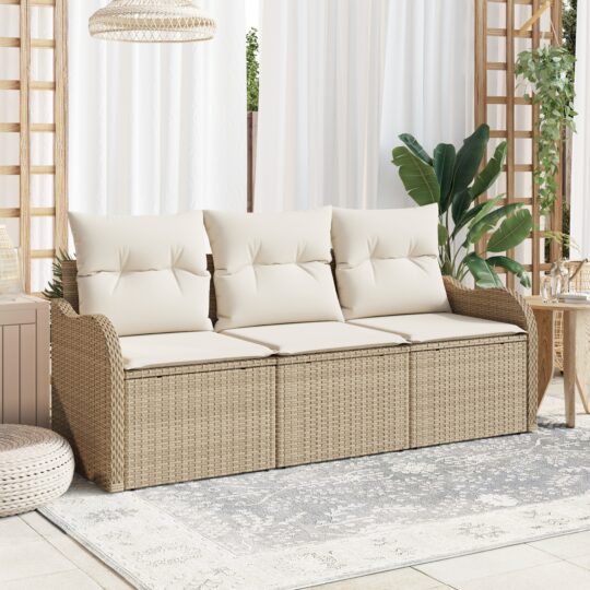 Set de canapele pentru grădină cu pernă 3 pcs Bej Rattan poli