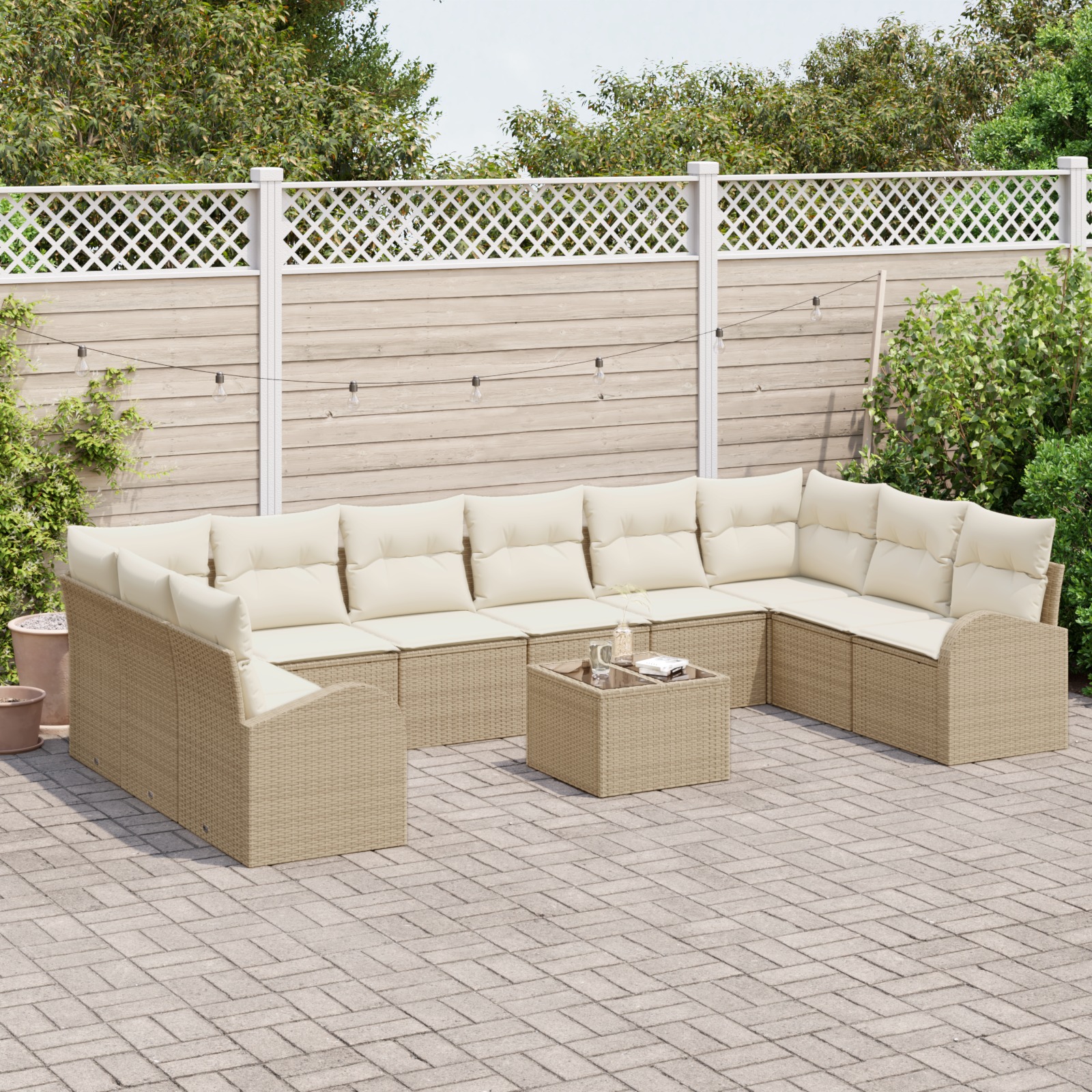 Set de canapele pentru grădină cu pernă 11 pcs Bej și crem
