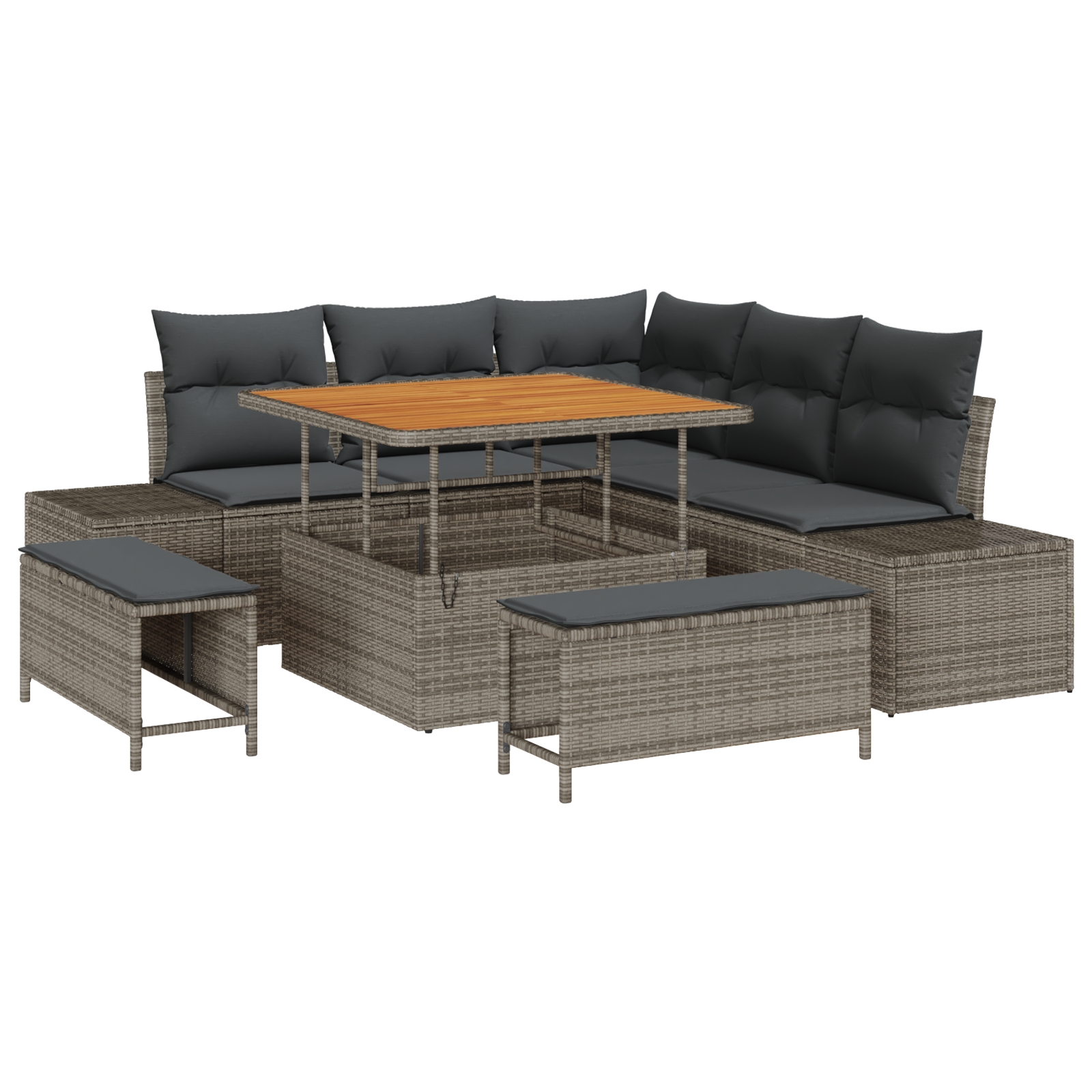 Set de canapele pentru grădină cu pernă 8 pcs Gri Rattan poli