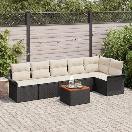 Set de canapele pentru grădină 7 pcs Negru Rattan poli
