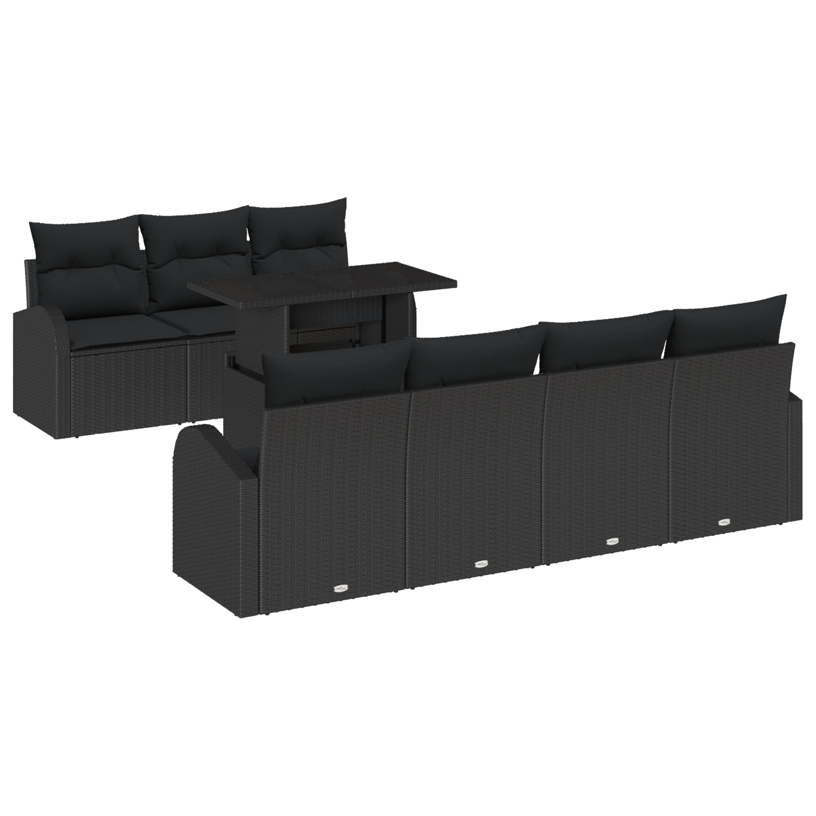Set de canapele pentru grădină cu pernă 8 pcs Negru Rattan poli