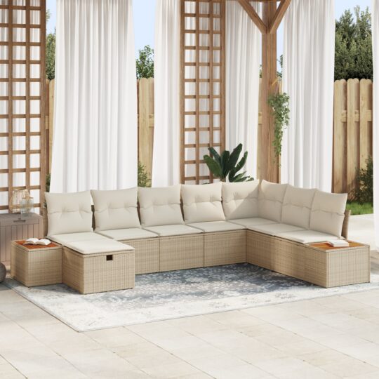 Set de canapele pentru grădină cu pernă 8 pcs Bej Rattan poli