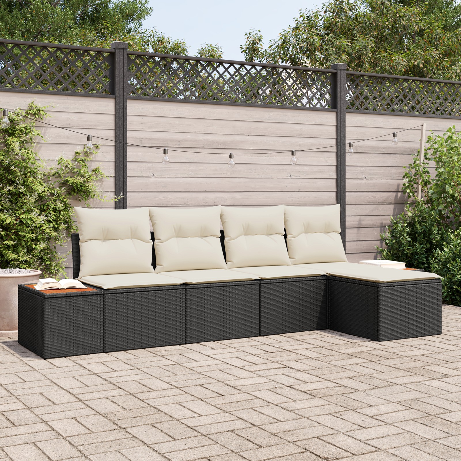Set de canapele pentru grădină cu pernă 5 pcs negru și crem