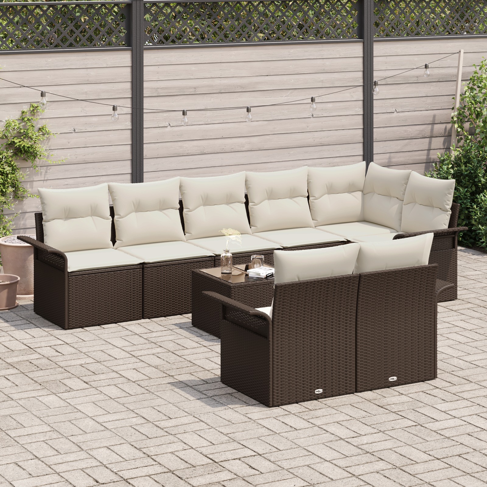 Set de canapele pentru grădină cu pernă 9 pcs Maro Rattan poli