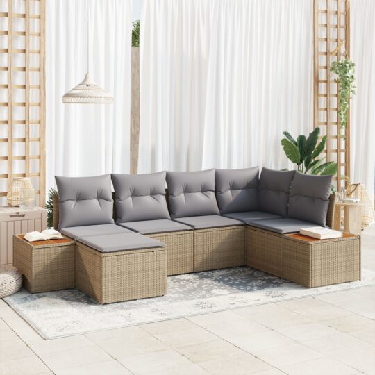 Set de canapele pentru grădină cu pernă 6 pcs Bej Rattan poli