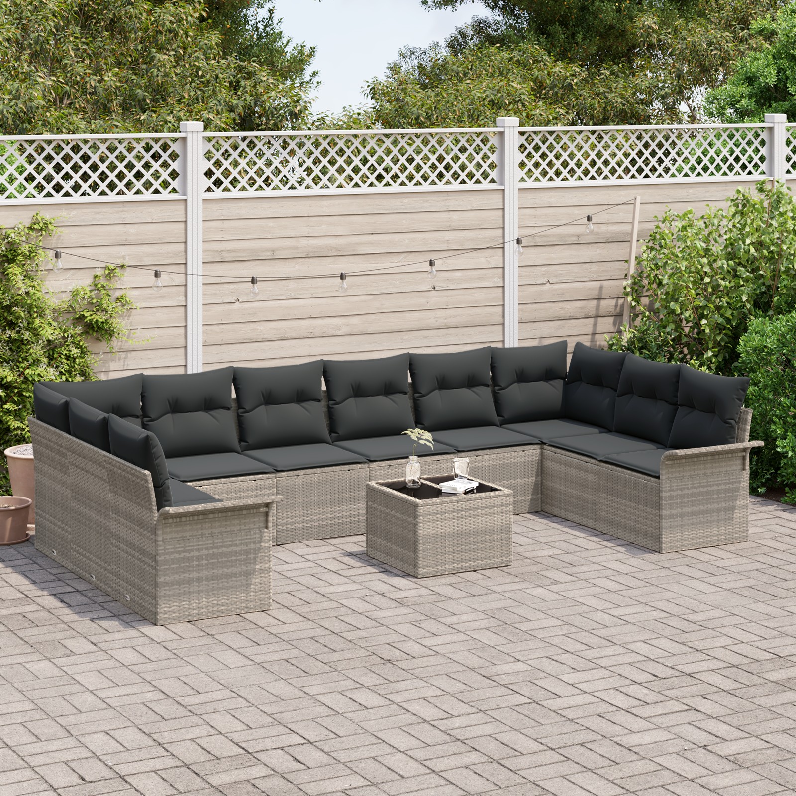Set de canapele pentru grădină cu pernă 11 pcs Gri Rattan poli