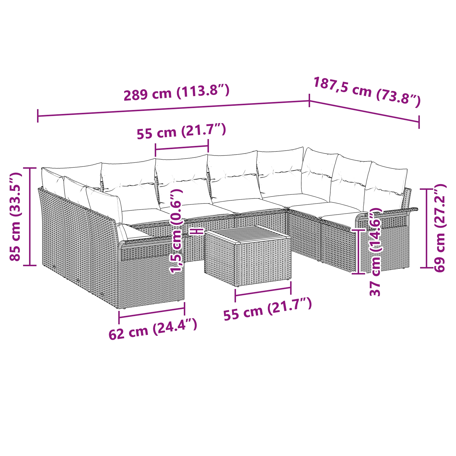 Set de canapele pentru grădină 10 pcs Negru Rattan poli