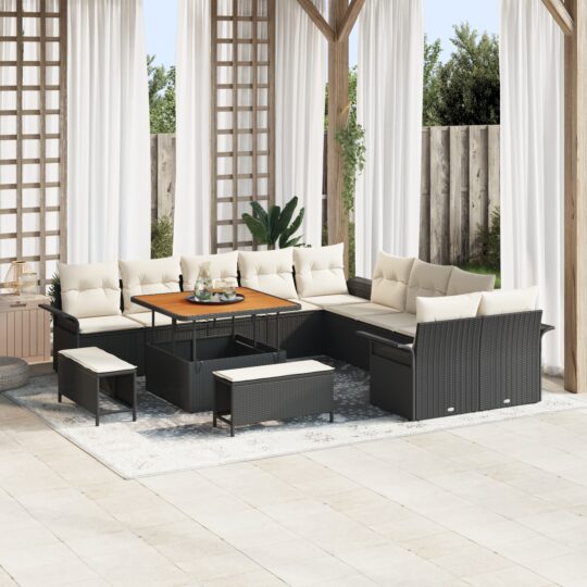Set de canapele pentru grădină cu pernă 13 pcs Negru și Crem