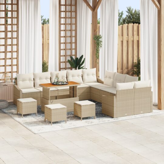 Set de canapele pentru grădină cu pernă 13 pcs Bej și crem