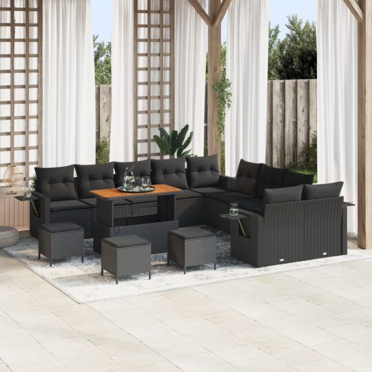 Set de canapele pentru grădină 14 pcs Negru Rattan poli