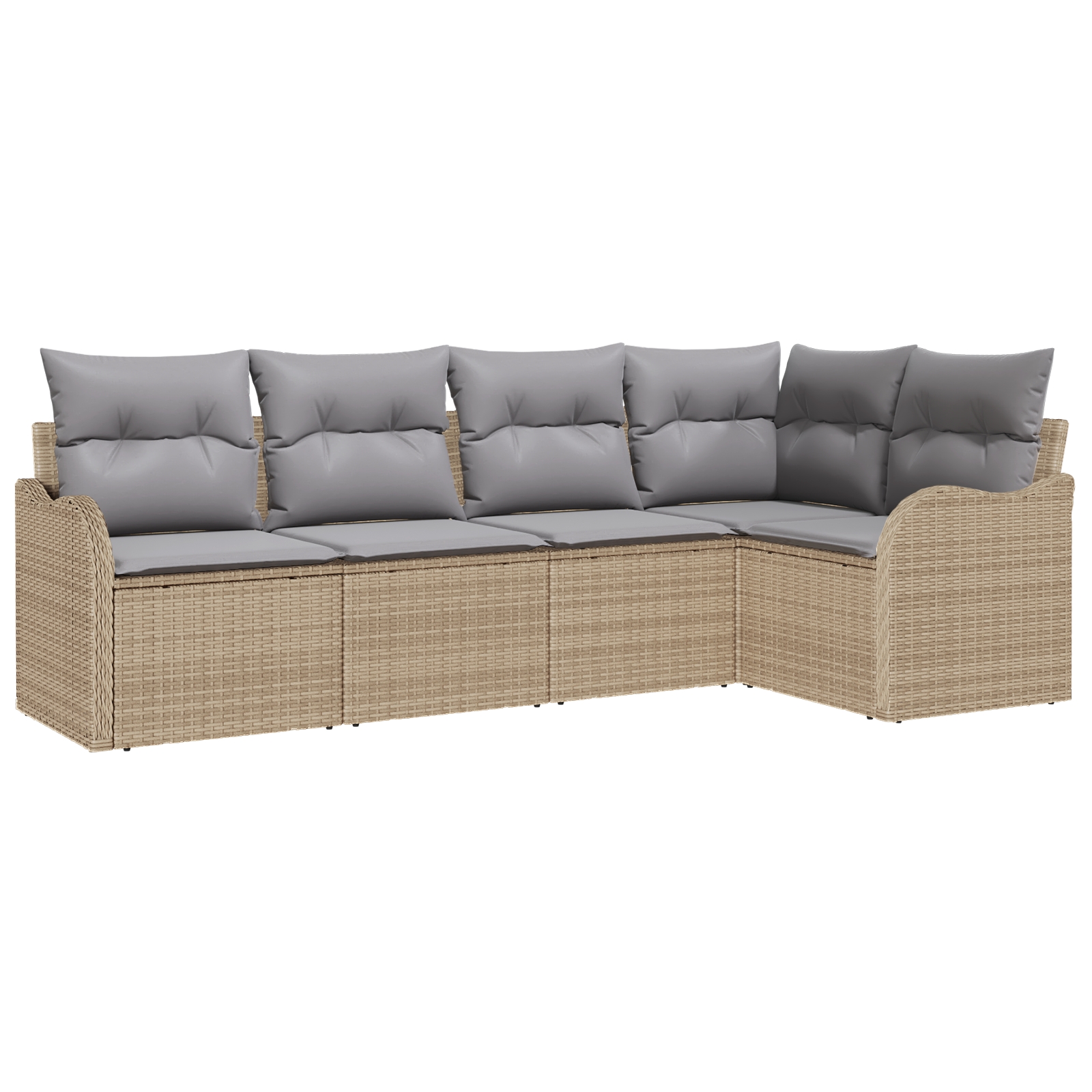 Set de canapele pentru grădină cu pernă 5 pcs Bej Rattan poli