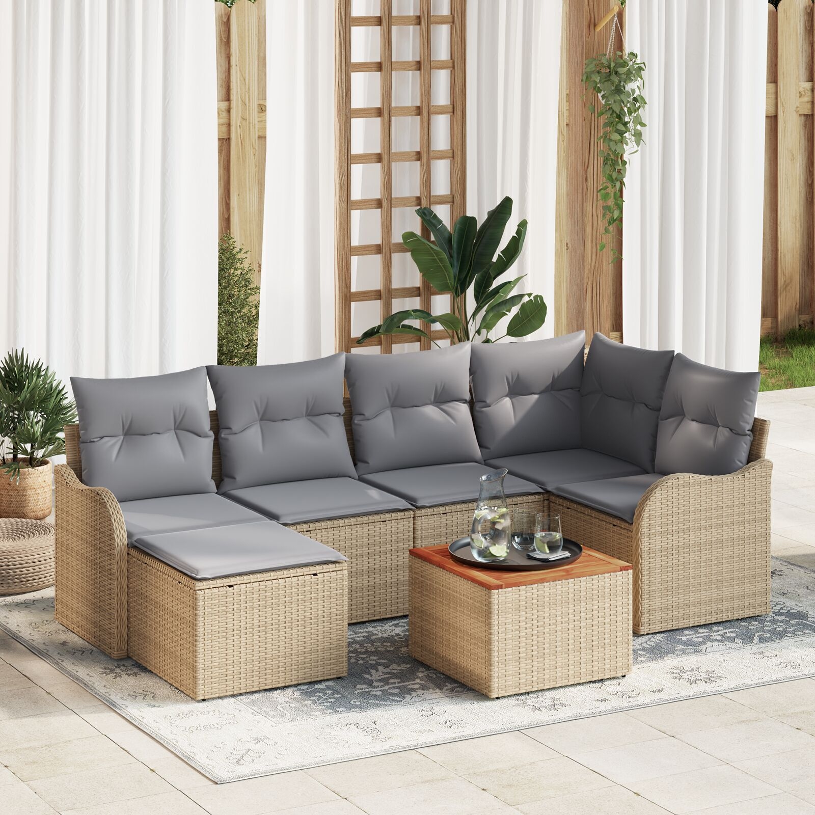 Set de canapele pentru grădină 7 pcs bej și gri deschis