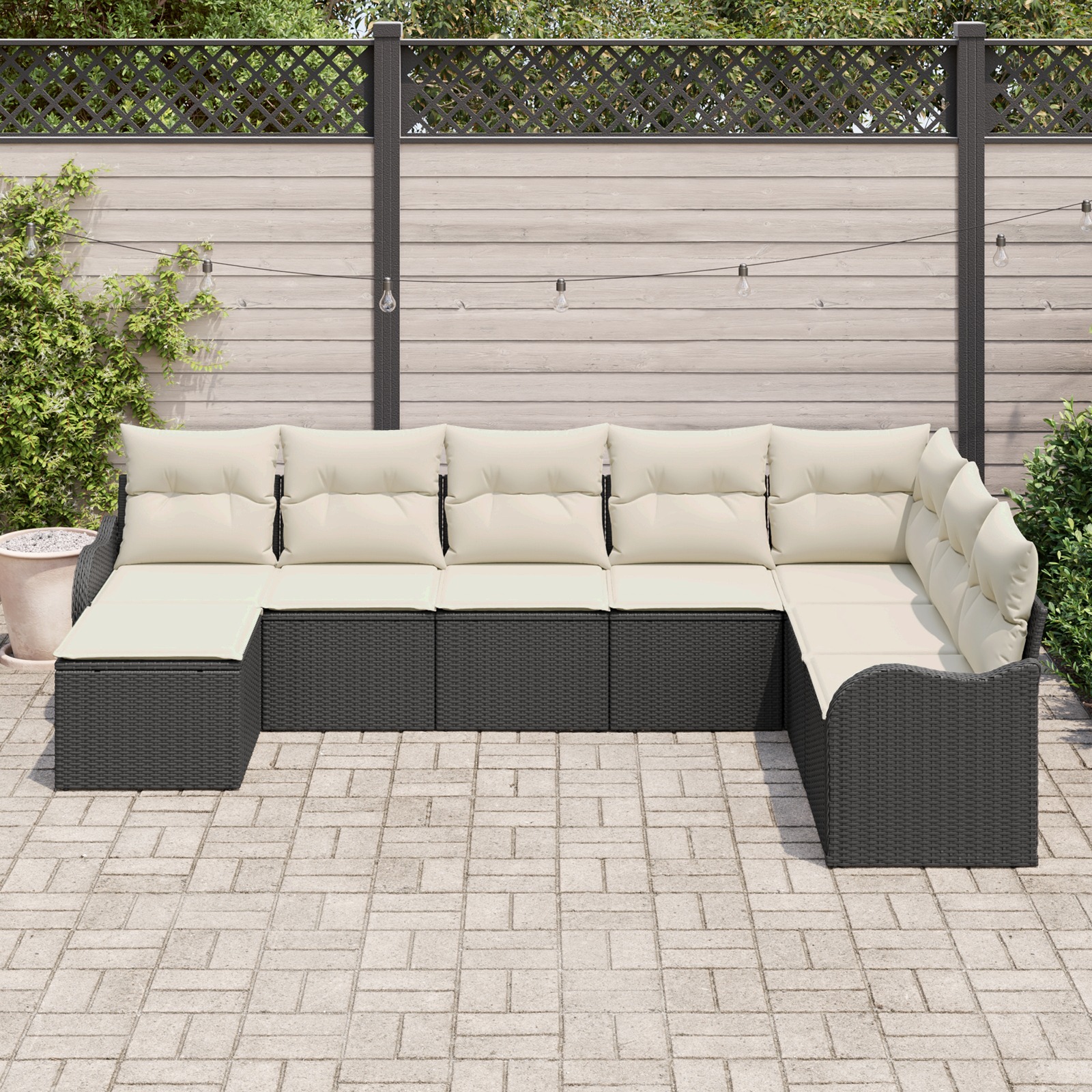 Set de canapele pentru grădină 8 pcs Negru și alb Rattan poli