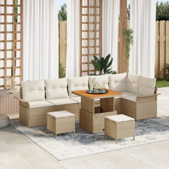 Set de canapele pentru grădină 9 pcs Bej poliratan