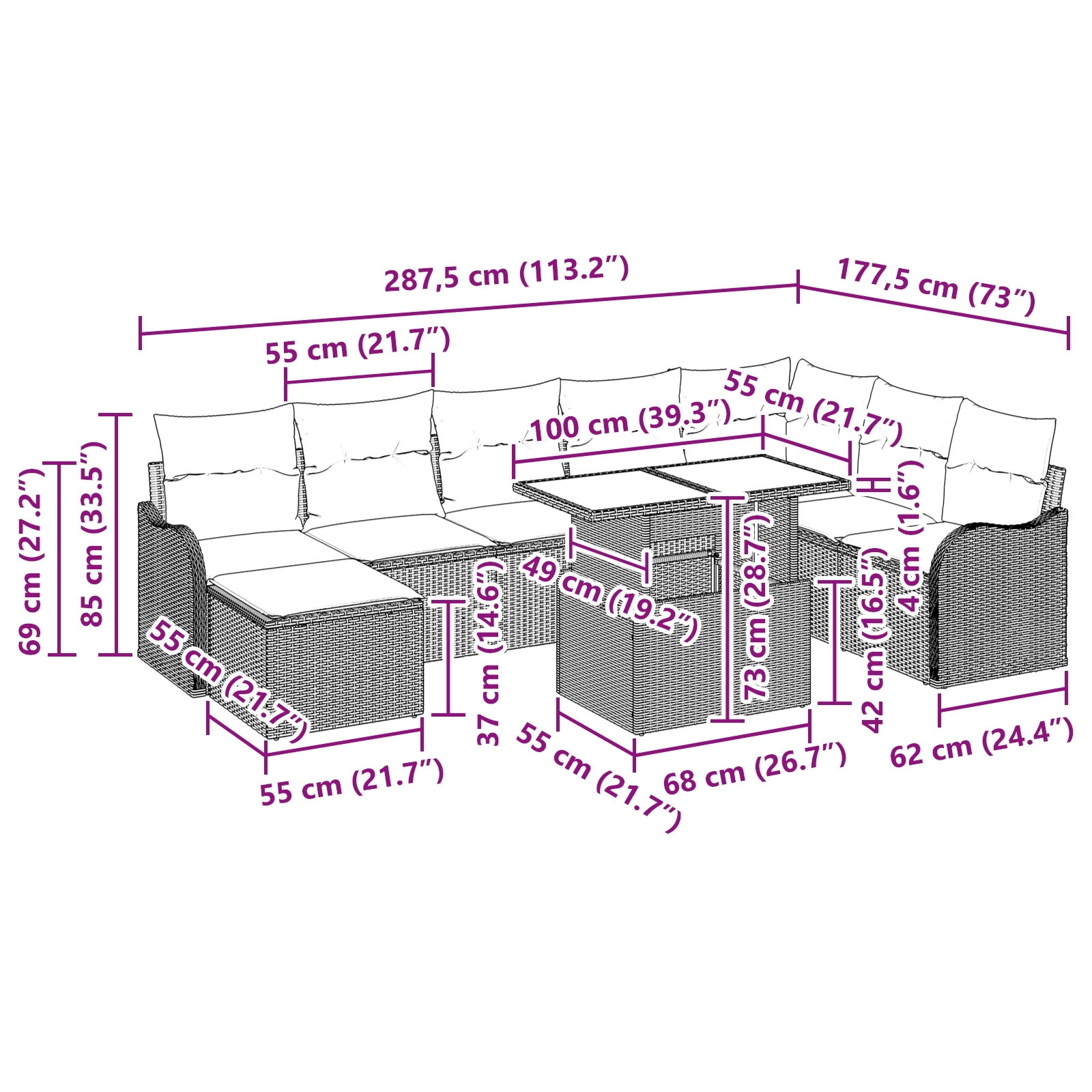 Set de canapele pentru grădină cu pernă 9 pcs Gri Rattan poli