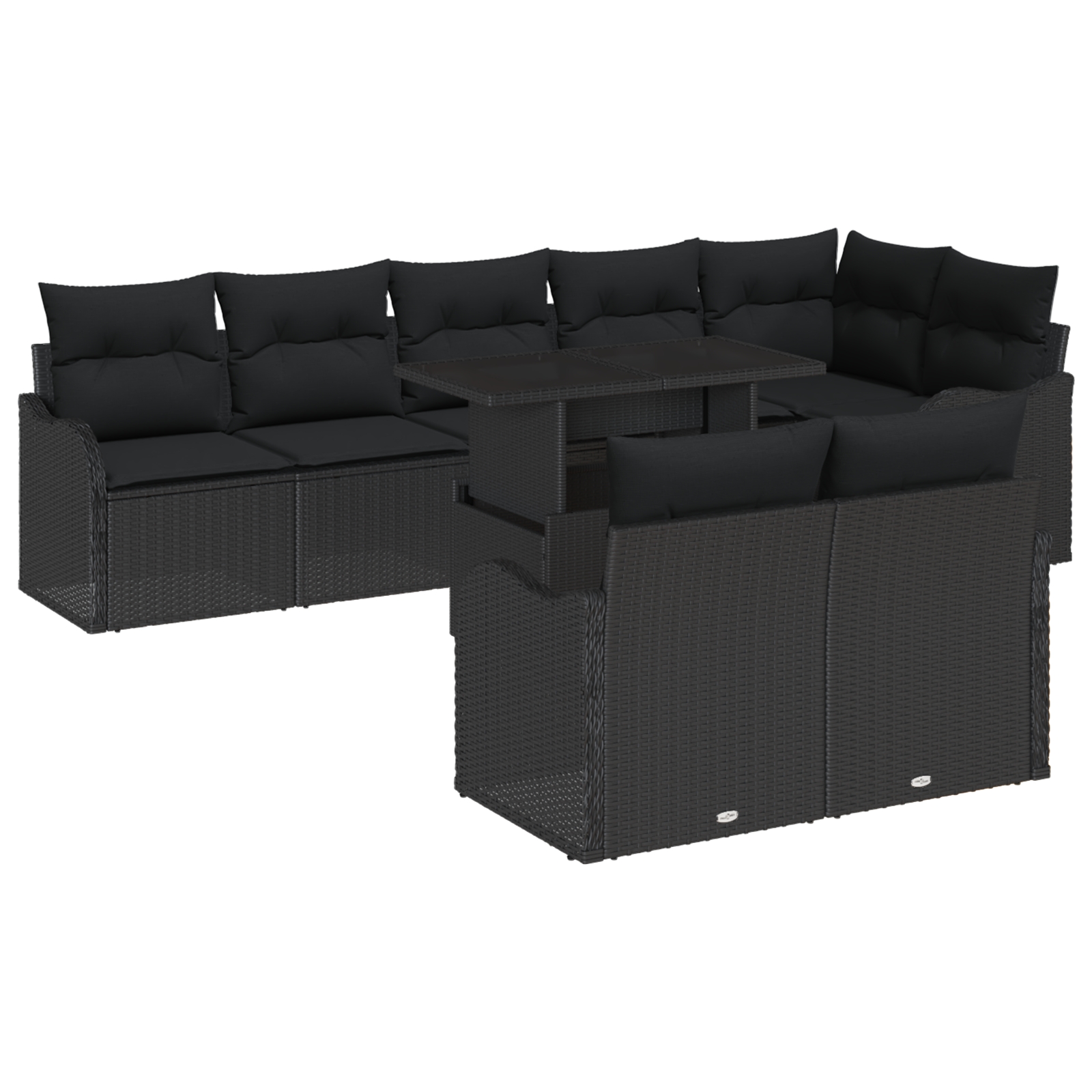 Set de canapele pentru grădină cu pernă 9 pcs Negru Rattan poli