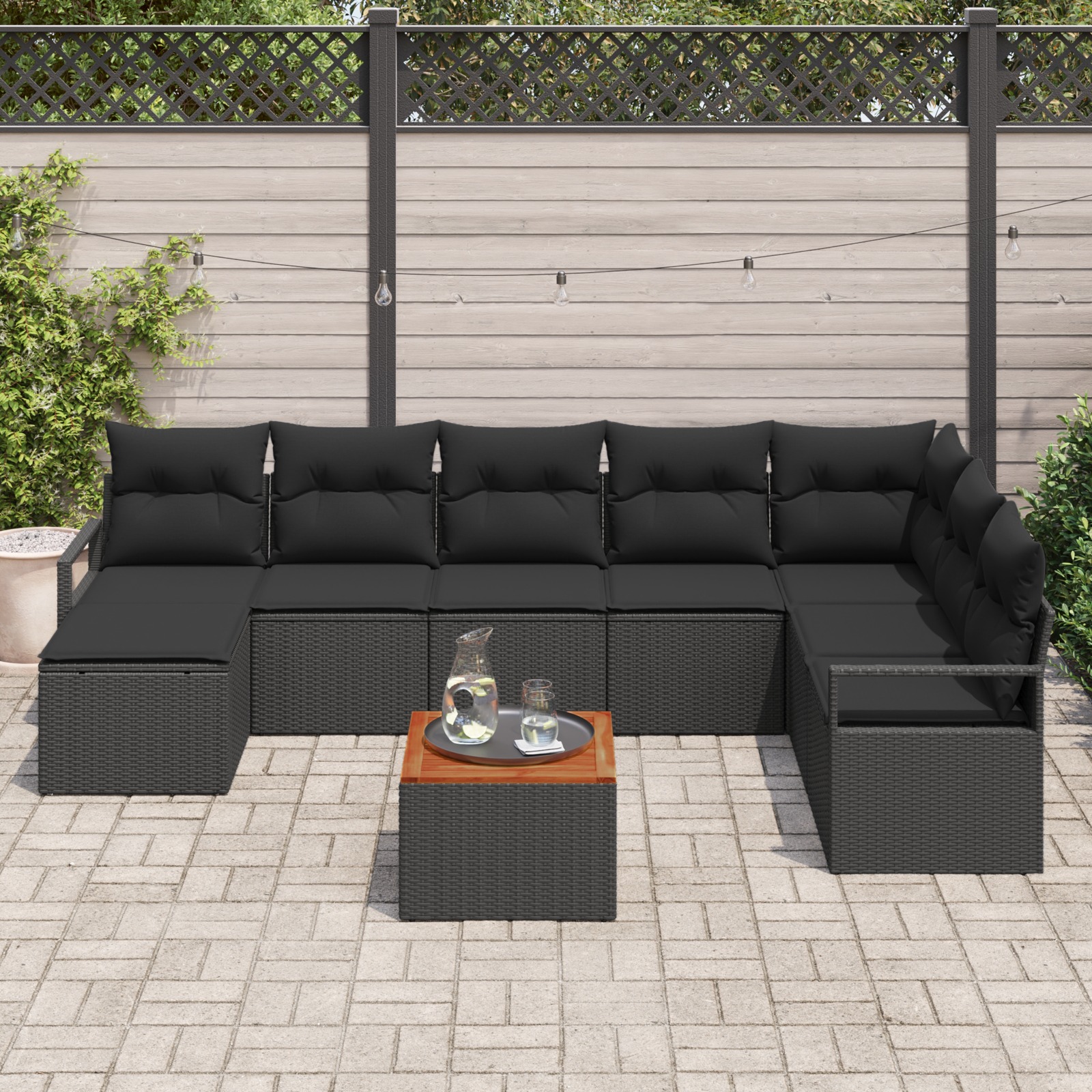 Set de canapele pentru grădină cu pernă 9 pcs Negru Rattan poli