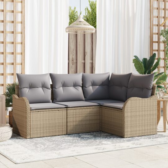 Set de canapele pentru grădină cu pernă 4 pcs Bej Rattan poli