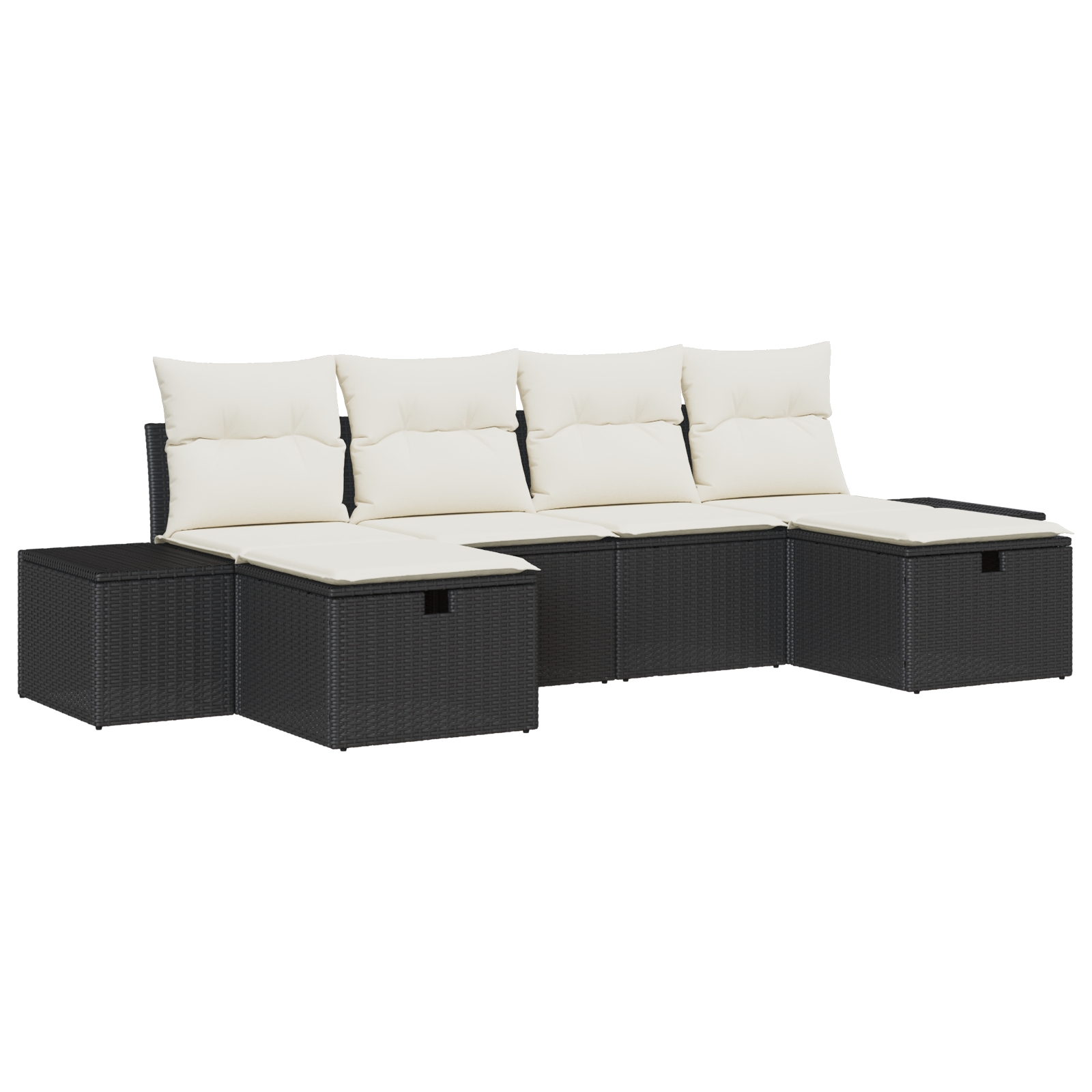 Set de canapele pentru grădină cu pernă 6 pcs Negru Rattan poli