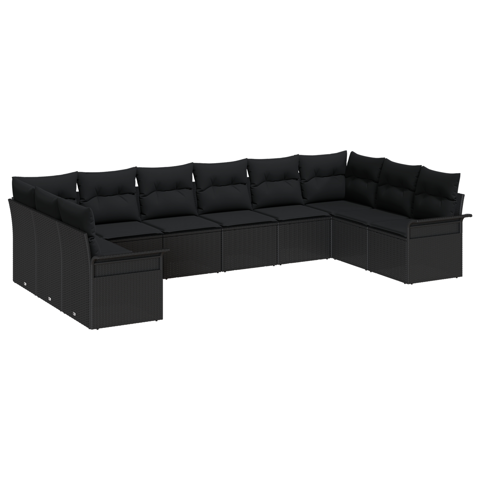 Set de canapele pentru grădină 10 pcs Negru Rattan poli