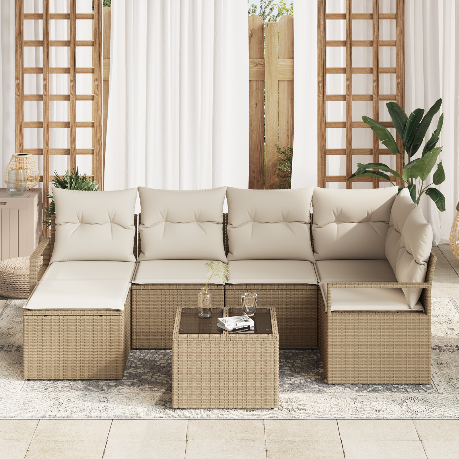 Set de canapele pentru grădină cu pernă 7 pcs Bej și crem