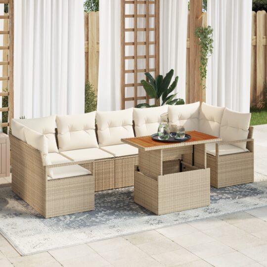 Set de canapele pentru grădină cu pernă 8 pcs Bej și crem