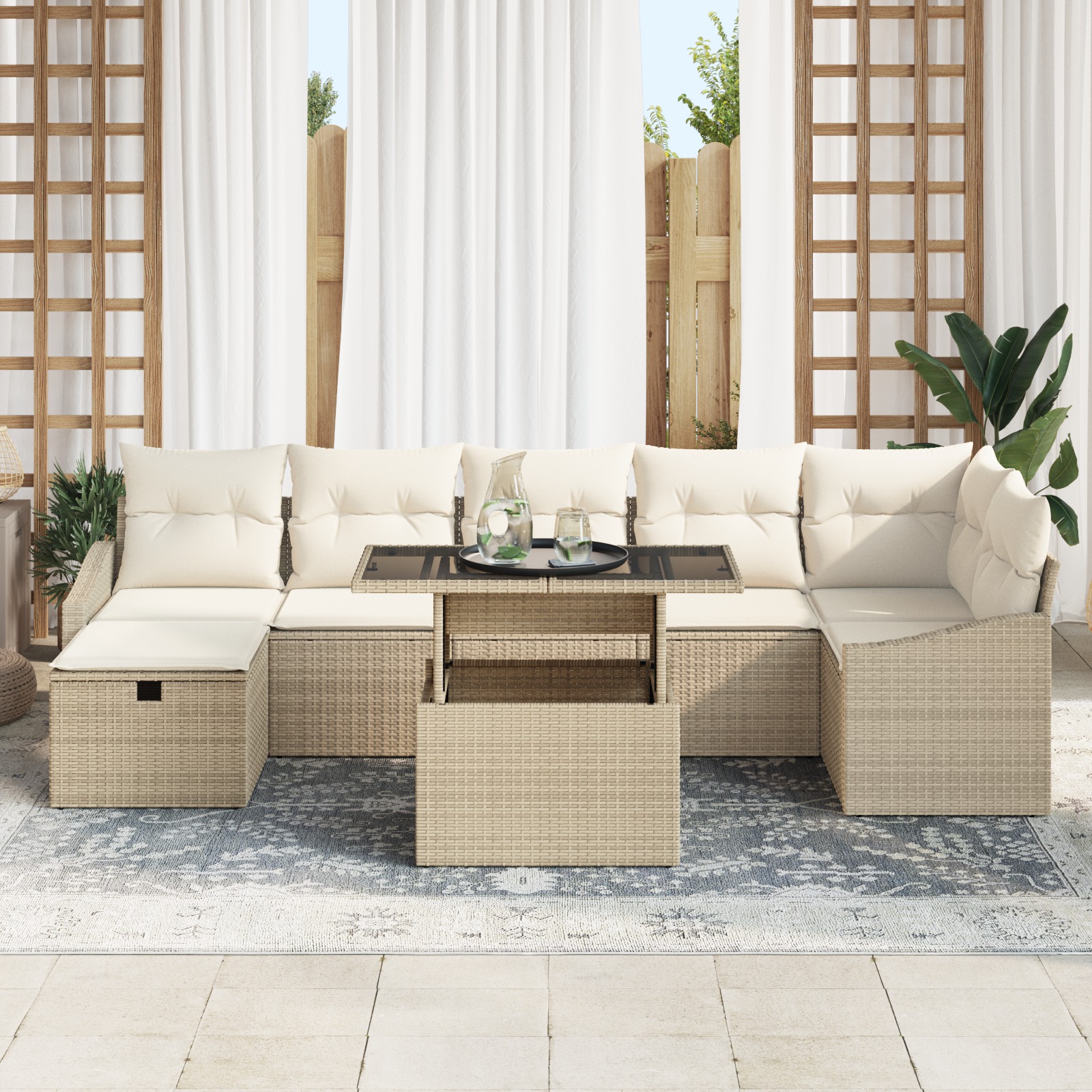 Set de canapele pentru grădină cu pernă 8 pcs Bej Rattan poli