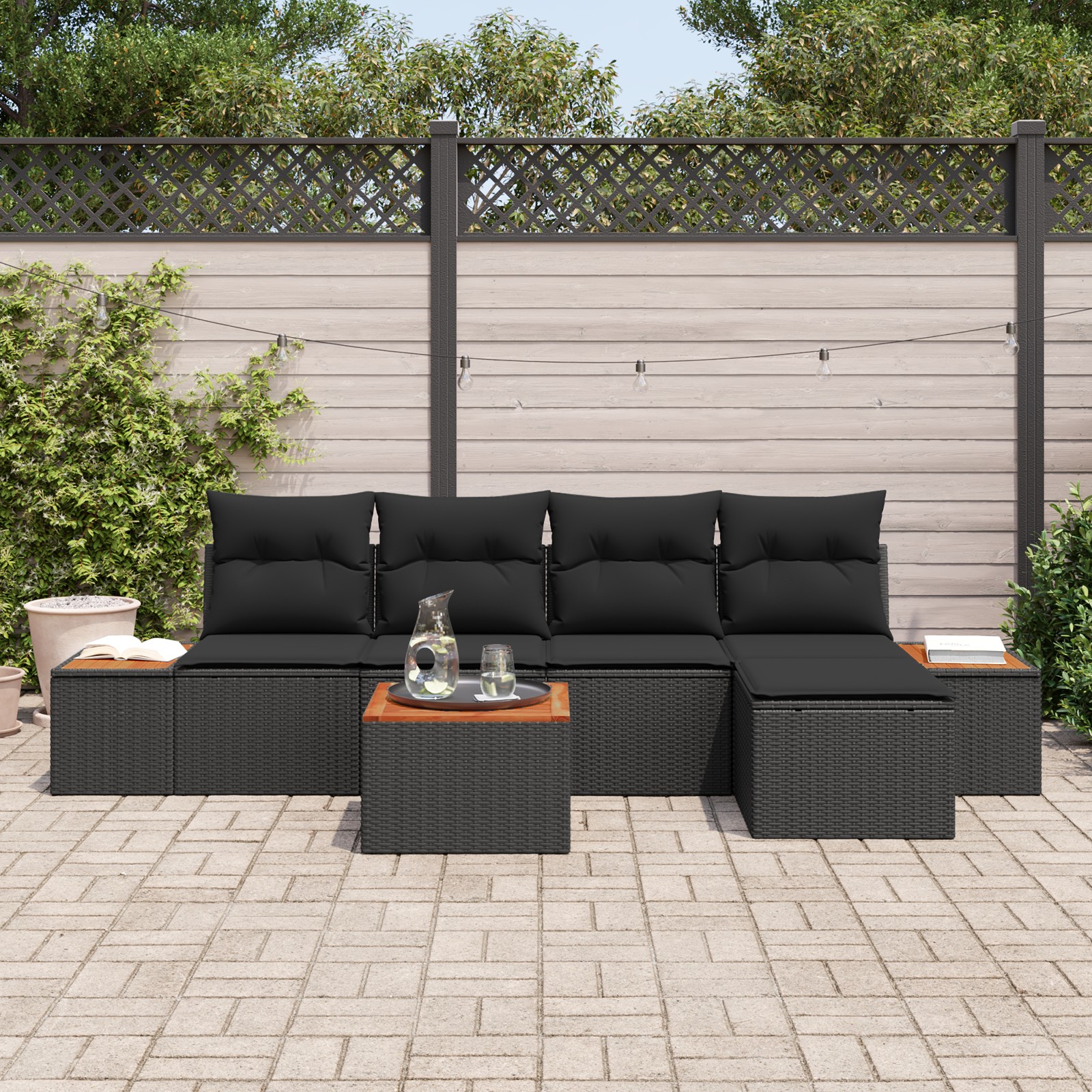 Set de canapele pentru grădină 6 pcs Negru 184 x 62 x 85 cm