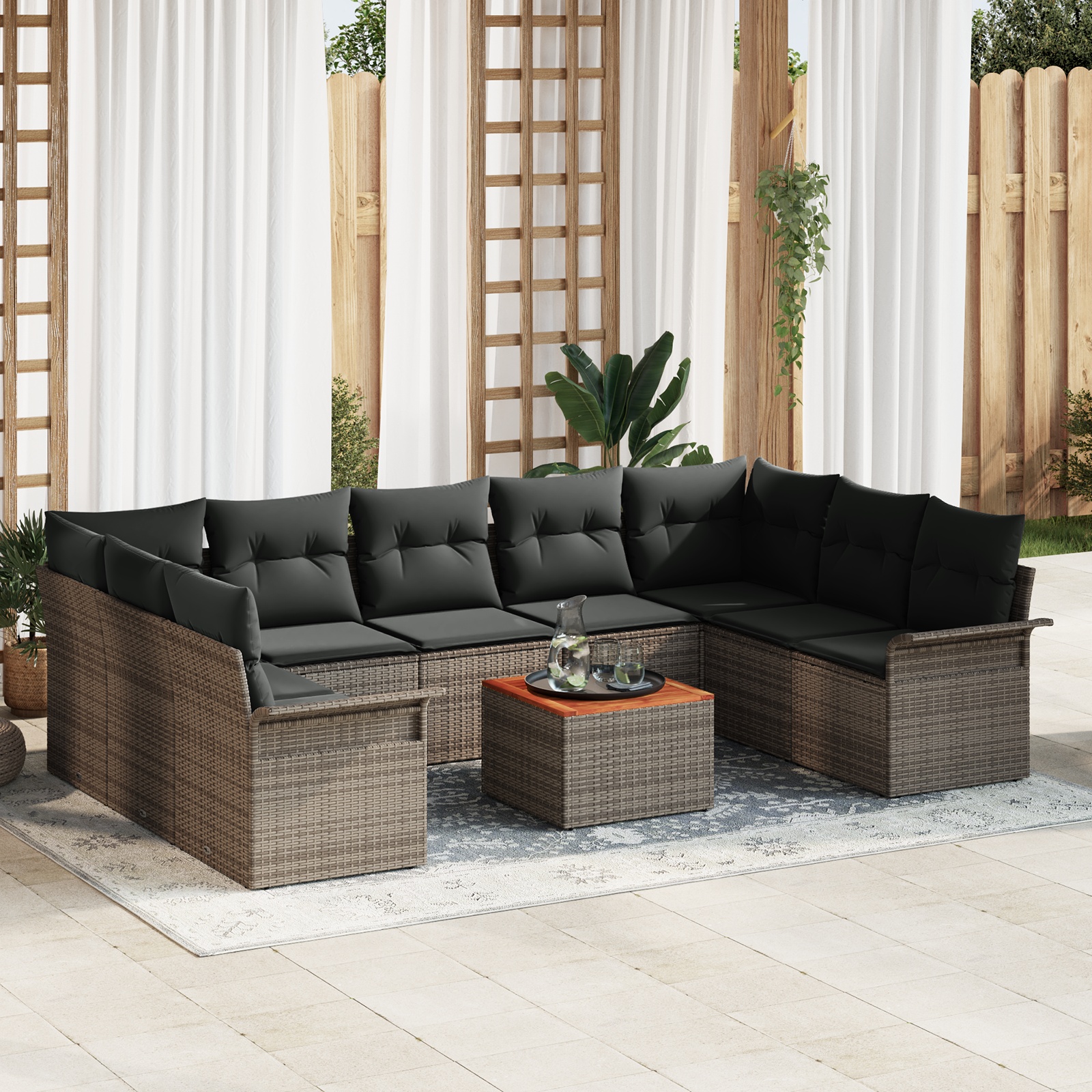 Setul ăsta de canapele pentru grădină e o alegere tare bună între stil și funcționalitate, perfect pentru orice spațiu în aer liber. Structura sa modernă din poliratan aduce un aer elegant și îți asigură confortul. E gândit să aducă un plus de stil atât în grădini mici, cât și în cele mari, invitându-te să te relaxezi sau să te distrezi cu prietenii. E suficient de flexibil pentru orice ocazie și îți permite să aranjezi locurile de șezut cum ai nevoie.