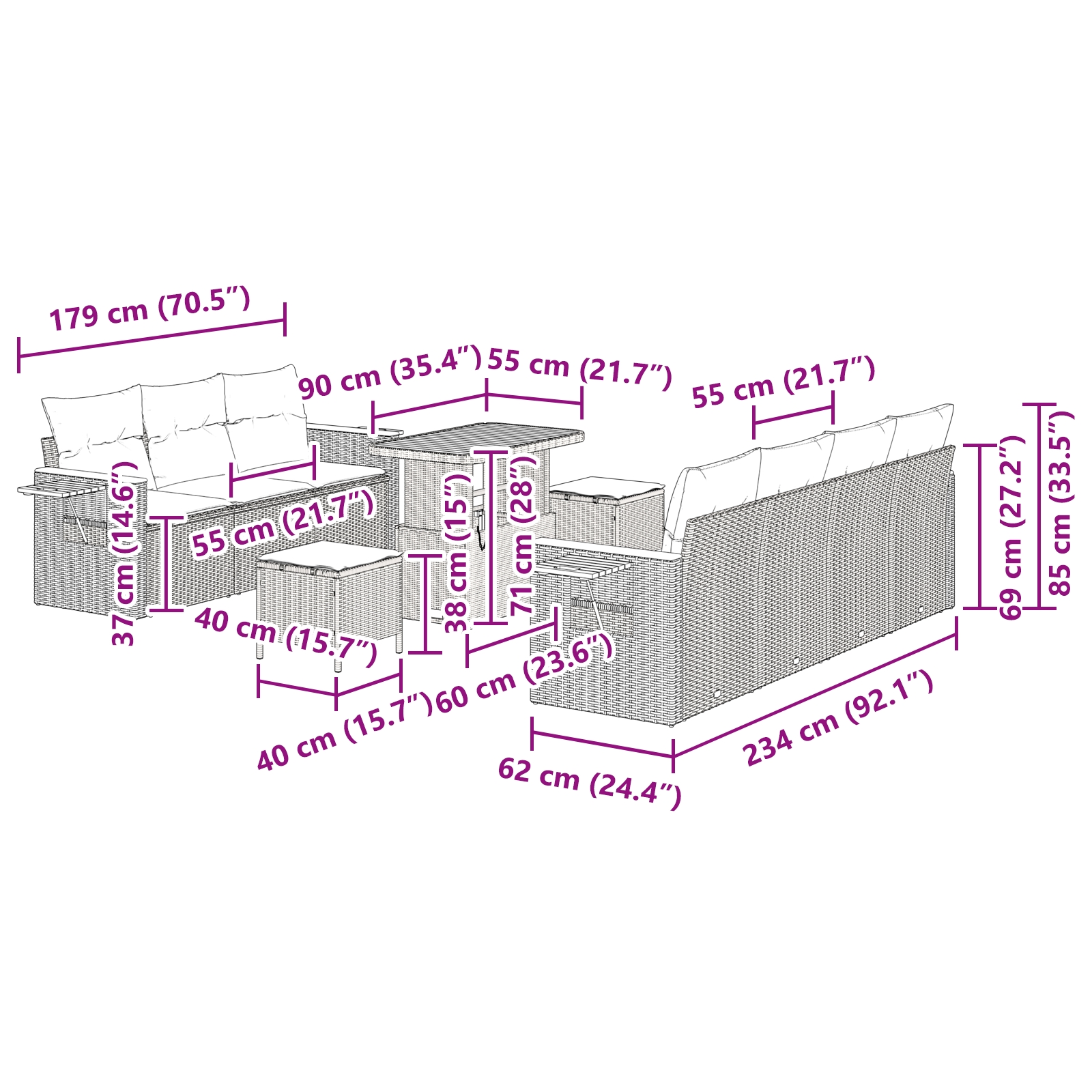 Set de canapele pentru grădină cu pernă 10 pcs negru și crem