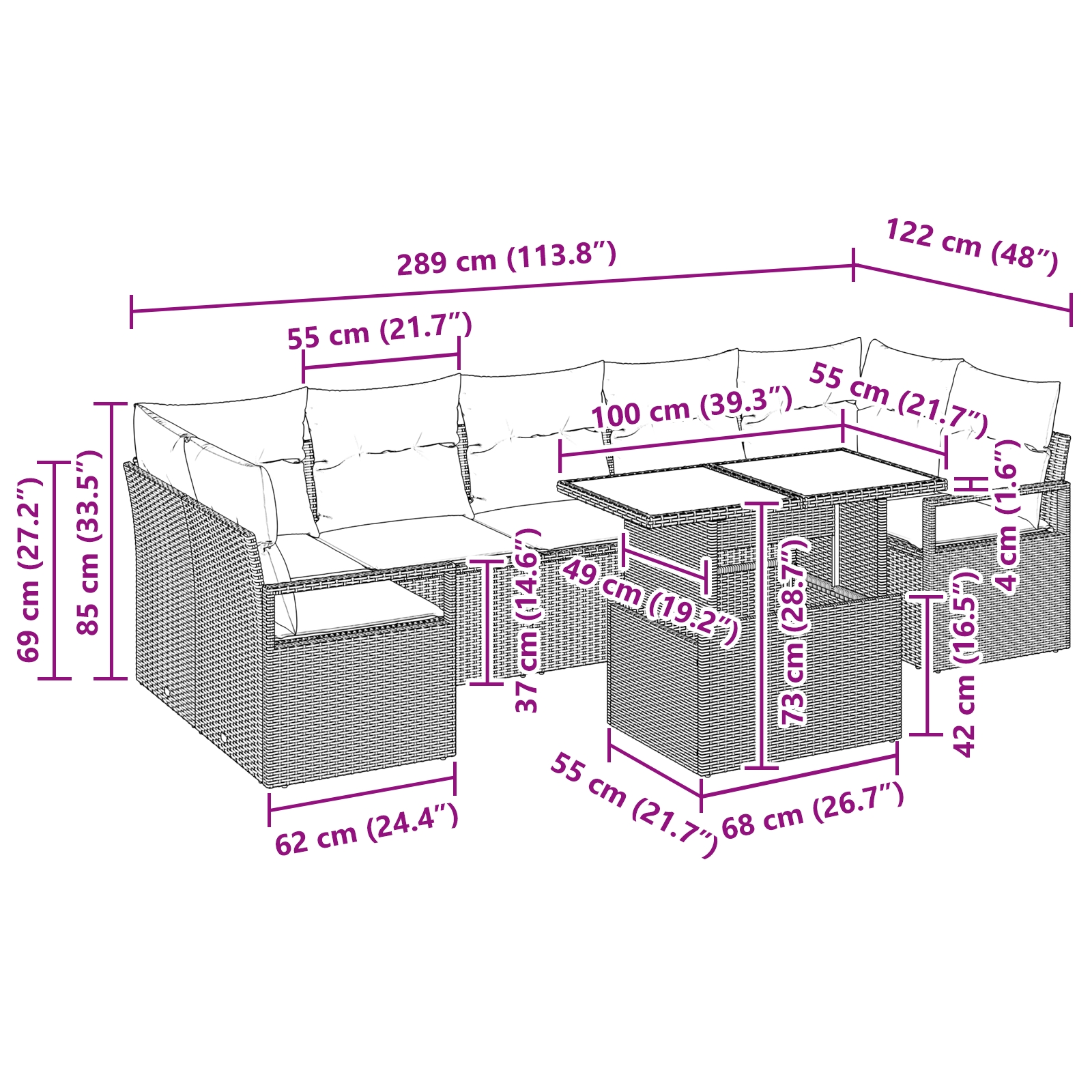 Acest set modern de canapele pentru grădină este conceput pentru relaxare și stil în aer liber. Compoziția include patru scaune de colț, trei scaune centrale, două canapele cu brațe și o masă, acest ansamblu este dedicat celor care apreciază eleganța și funcționalitatea. Fabricat din poliratan de calitate superioară și întărit cu oțel vopsit electrostatic, acest set susține petrecerea timpului cu prietenii și familia sau bucuria momentelor liniștite sub soare. Liniile sale elegante, combinate cu textura împletită și aspectul modern, îl fac perfect pentru terase sau patio contemporane.