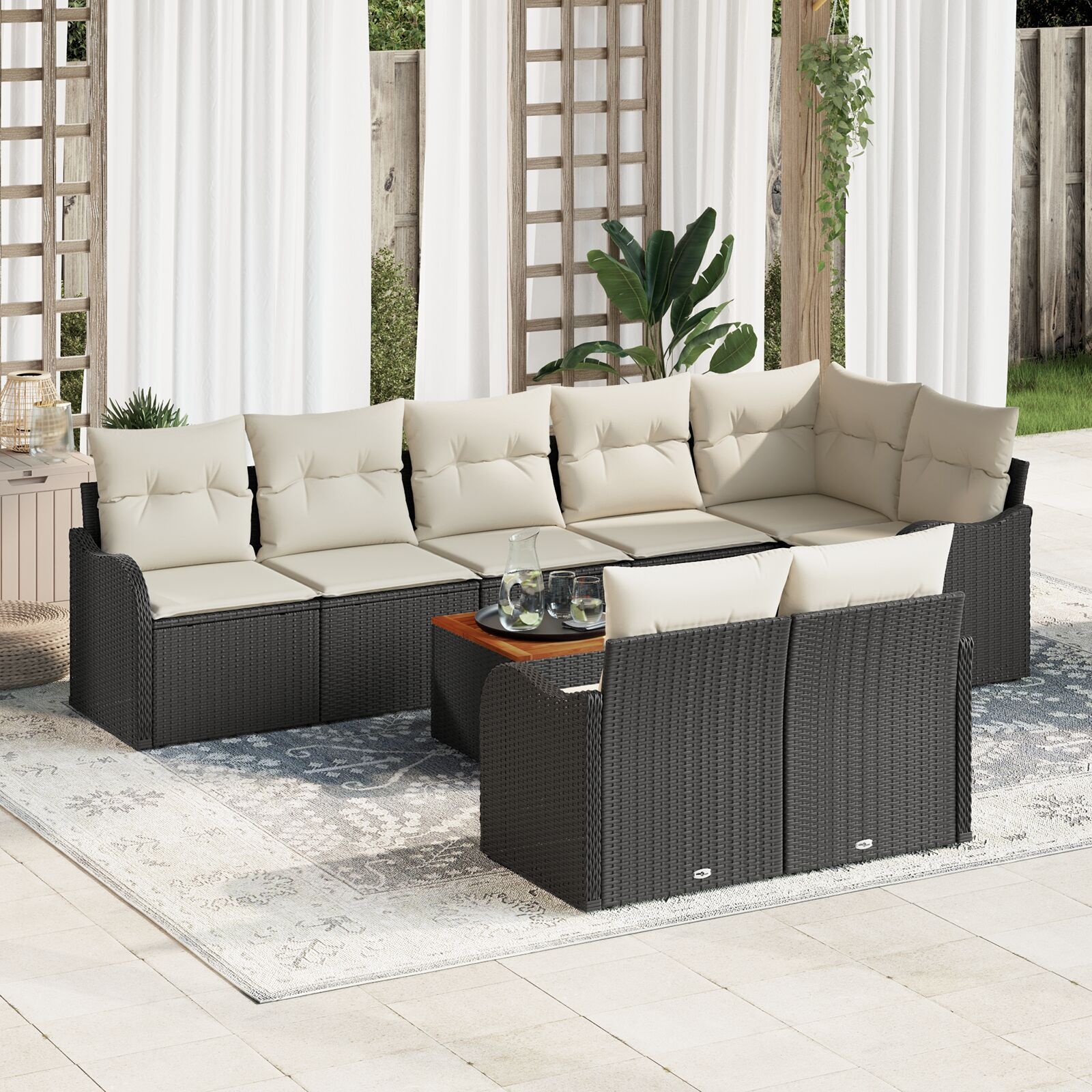 Set de canapele pentru grădină 9 pcs Negru și alb