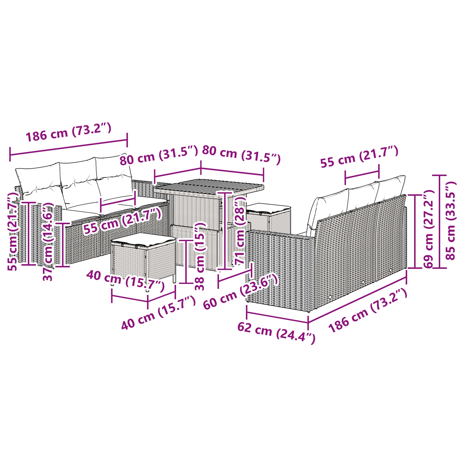 Set de canapele pentru grădină 9 pcs Gri poliratan