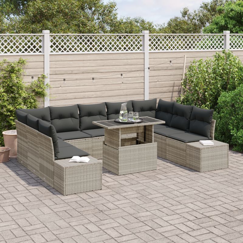 Set de canapele pentru grădină 10 pcs Gri deschis Rattan poli