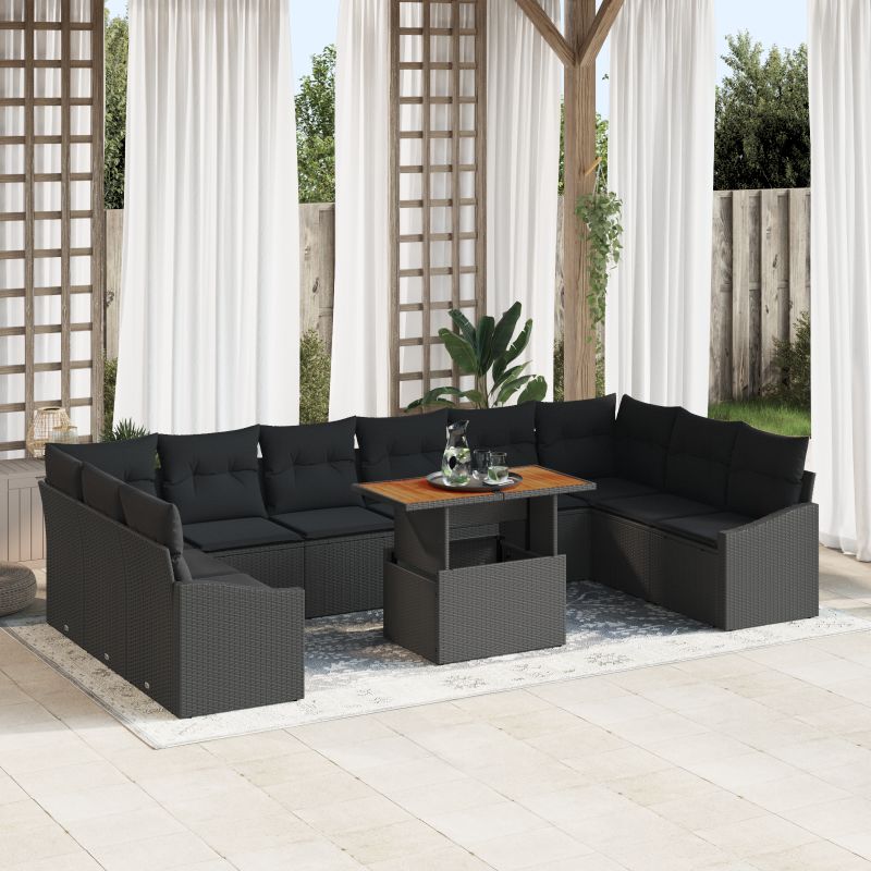 Set de canapele pentru grădină 11 pcs Negru Rattan poli