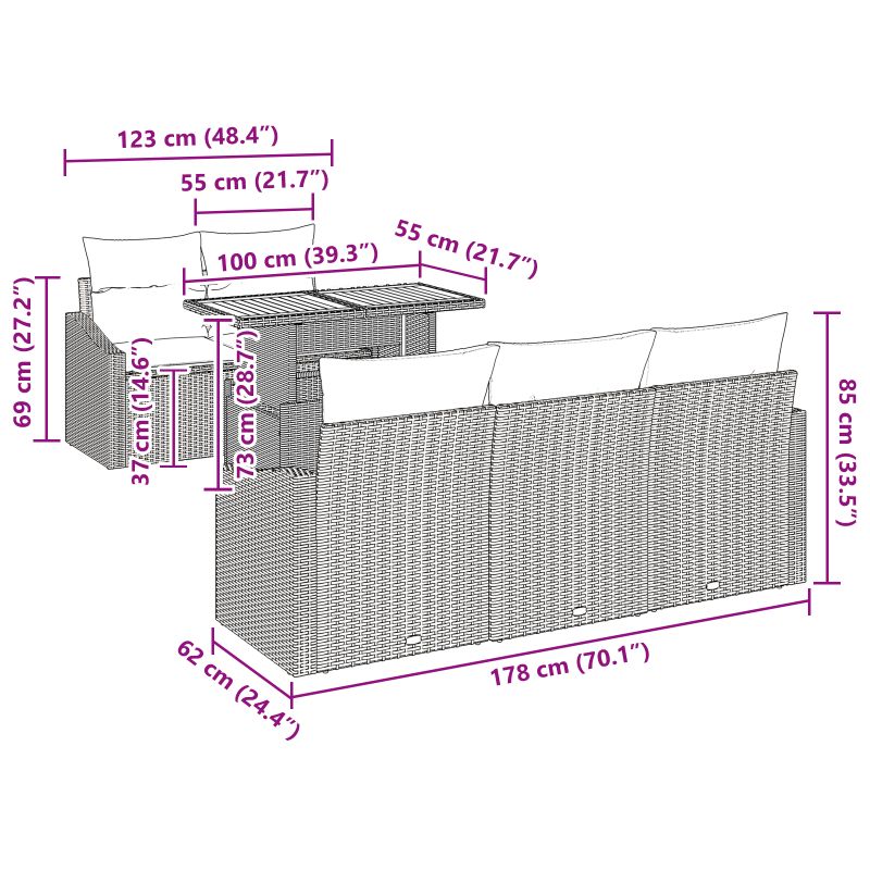 Setul ăsta de canapea de grădină îmbină stilul modern cu utilitatea practic. E perfect să dai viață spațiului tău de locuit afară. Designul modular îți permite să-l ajustezi cum vrei, să se potrivească în diferite setări. Cu linii elegante și o textură primitoare, se integrează super bine în grădinile moderne. Creat pentru confort, e ideal pentru întâlnirile de vară sau pur și simplu pentru relaxare, oferindu-ți un loc comod în care să te retragi.