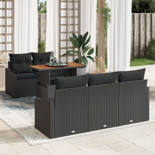 Set de canapele pentru grădină 6 pcs Negru Rattan poli