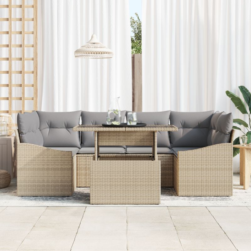 Set de canapele pentru grădină 7 pcs Bej Rattan poli